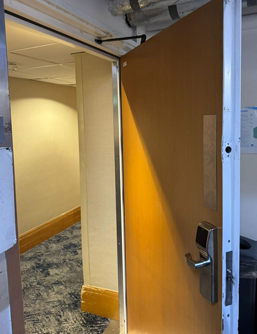 For fire doors to function effectively, they must be installed correctly and maintained in accordance with fire doors regulations. Essential components such as intumescent seals, which expand in heat to seal gaps, and self-closing mechanisms must be in working order. Fire-rated hinges, intumescent hinge pads, door frames, and glazing must also meet fire resistance standards to ensure the doorset can provide the intended level of protection. Regular inspections help ensure these features remain intact and free from obstruction, preventing potential failures in an emergency. Maintaining fire doors is a much more cost-effective strategy for business’s than simply replacing them, we often find client’s have been recommended that they need to replace their damaged or faulty fire doors when a repair can be carried out for a much lower cost.